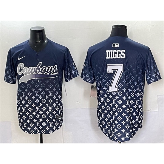- Men Dallas Cowboys Big Logo Royal With Patch Cool Base Stitched Baseball Jersey 5