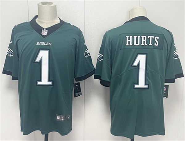 - Men Philadelphia Eagles 1 Jalen Hurts Green With C Patch Cool Base Stitched Baseball Jersey